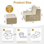 Main seat and ottoman join or separate to suit different room setups.